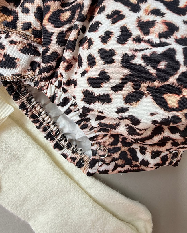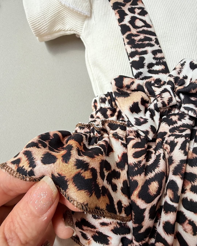 ست سه تیکه پلنگی اندازه ها: سایز۱ شورتک(پهنا۲۵سرشانه تافاق۲۰) تیشرت(پهنا۲۱قدکل۲۷) سایز۲ شورتک(پهنا۲۶سرشانه تافاق۲۲) تیشرت(پهنا۲۱قدکل۳۱) سایز۳ شورتک(پهنا۲۷سرشانه تافاق۲۳) تیشرت(پهنا۲۲قدکل۳۳) لطفا به اندازه ها دقت کنید و طبق اون سایز مورد نظرتونو انتخاب کنید جثه و سرعت رشد بچه ها با هم فرق داره مقایسه نکنید و با لباسی که سایز کوچولوی خودتونونه مطابقت بدید یک الی دو درجه تغییر رنگ به دلیل شرایط نور و عکاسی در نظر بگیرید
