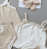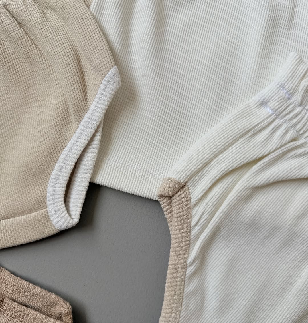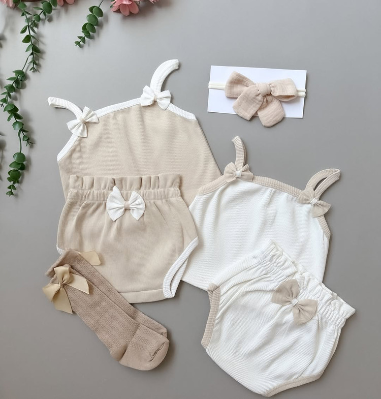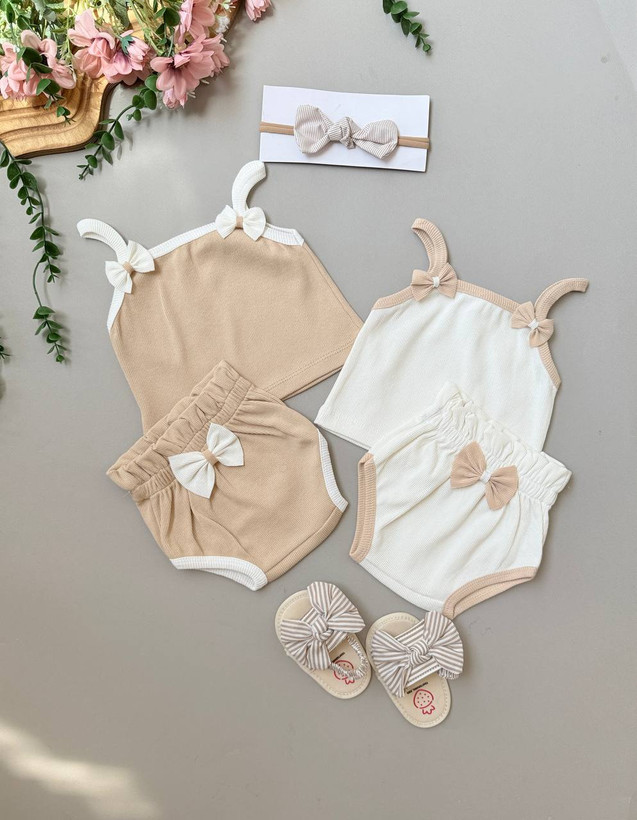 ست جذاب تاپ شورتک دوتیکه سایزبندی: اندازه کراپ شورتک دو رنگ کراپ سایز یک:قد کل۲۳پهنا۲۱مناسب (۶۱۲)ماه سایز دو:قدکل۲۶پهنا۲۴مناسب(۱۲۱۸)ماه سایزسه:قد کل ۳۰پهنا۲۶مناسب۱۸۲۴ماه شورتک سایز یک:قد فاق۲۰پهنا۱۹ سایزدو:قدفاق۲۱پهنا۲۲ سایزسه:قد فاق۲۳پهنا۲۴ لطفا به اندازه ها دقت کنید و طبق اون سایز مورد نظرتونو انتخاب کنید جثه و سرعت رشد بچه ها با هم فرق داره مقایسه نکنید و با لباسی که سایز کوچولوی خودتونونه مطابقت بدید یک الی دو درجه تغییر رنگ به دلیل شرایط نور و عکاسی در نظر بگیرید