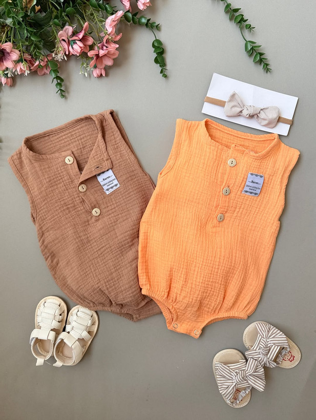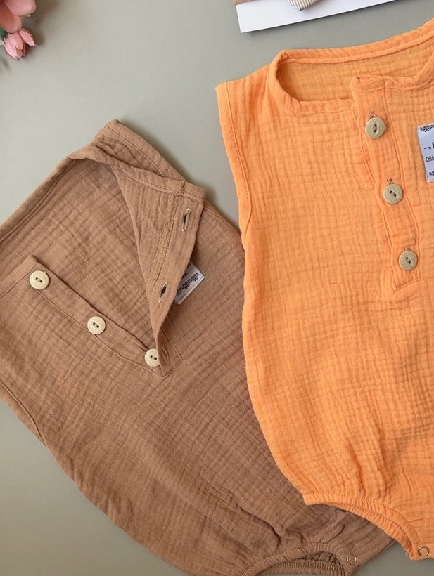 بادی موسلین خنک سایزبندی : سایز موسلین رکابی سایز یک:قد فاق۳۸پهنا۲۱ سایزدو:قد فاق۴۲پهنا۲۴ سایزسه:قدفاق۴۳پهنا۲۵ سایزچهار:قد فاق۴۶پهنا۲۶ لطفا به اندازه ها دقت کنید و طبق اون سایز مورد نظرتونو انتخاب کنید جثه و سرعت رشد بچه ها با هم فرق داره مقایسه نکنید و با لباسی که سایز کوچولوی خودتونونه مطابقت بدید یک الی دو درجه تغییر رنگ به دلیل شرایط نور و عکاسی در نظر بگیرید .