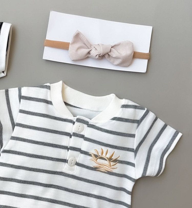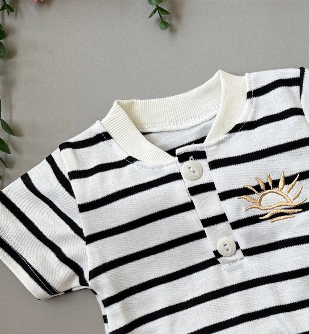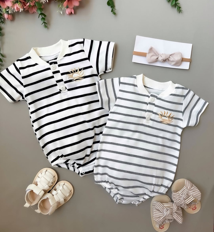 بادی نخ پنبه سایزبندی: بادی راه راه سایزیک:قد فاق۴۰/پهنا۲۲ سایزدو :قد فاق۴۲/پهنا۲۵ سایزسه:قد فاق۴۵/پهنا۲۷ سایز چهار:قد فاق۴۸/پهنا۲۸ لطفا به اندازه ها دقت کنید و طبق اون سایز مورد نظرتونو انتخاب کنید جثه و سرعت رشد بچه ها با هم فرق داره مقایسه نکنید و با لباسی که سایز کوچولوی خودتونونه مطابقت بدید یک الی دو درجه تغییر رنگ به دلیل شرایط نور و عکاسی در نظر بگیرید 🌸