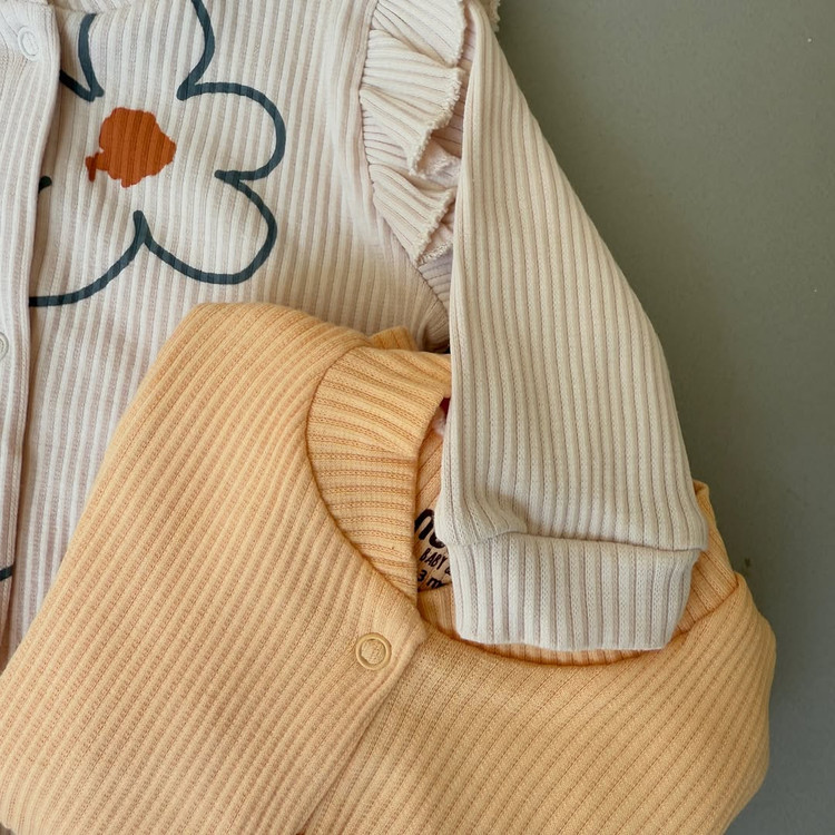 وارداتی ترک صددرصد نخ پنبه دکمه از یقه تا پایین قواره ریز لطفا به اندازه ها دقت کنید سایزبندی: سایزصفر تا سه ماه فاق ۳۱/پهنا۲۲/قد کل۴۱ سایز سه تا شش ماه: فاق۳۲/پهنا۲۴/قد کل۴۲ لطفا به اندازه ها دقت کنید و طبق اون سایز مورد نظرتونو انتخاب کنید جثه و سرعت رشد بچه ها با هم فرق داره مقایسه نکنید و با لباسی که سایز کوچولوی خودتونونه مطابقت بدید یک الی دو درجه تغییر رنگ به دلیل شرایط نور و عکاسی در نظر بگیرید