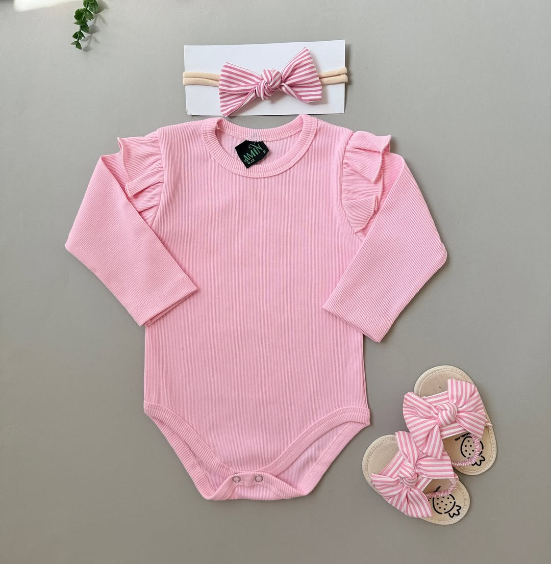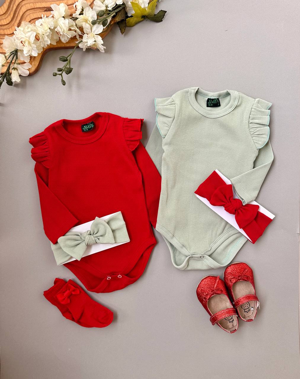 سایزبندی: سایز۱(پهنا۲۲_فاق۳۸_آستین۲۲)۳/۶ماه سایز۲(پهنا۲۵_فاق۴۱_آستین۲۵)۶/۱۲ماه سایز۳(پهنا۲۶_فاق۴۵_آستین۲۸)۱۲/۱۸ماه سایز۴(پهنا۲۸_فاق۴۷_آستین۳۱)۱۸/۲۴ماه لطفا به اندازه ها دقت کنید و طبق اون سایز مورد نظرتونو انتخاب کنید جثه و سرعت رشد بچه ها با هم فرق داره مقایسه نکنید و با لباسی که سایز کوچولوی خودتونونه مطابقت بدید یک الی دو درجه تغییر رنگ به دلیل شرایط نور و عکاسی در نظر بگیرید ۱
