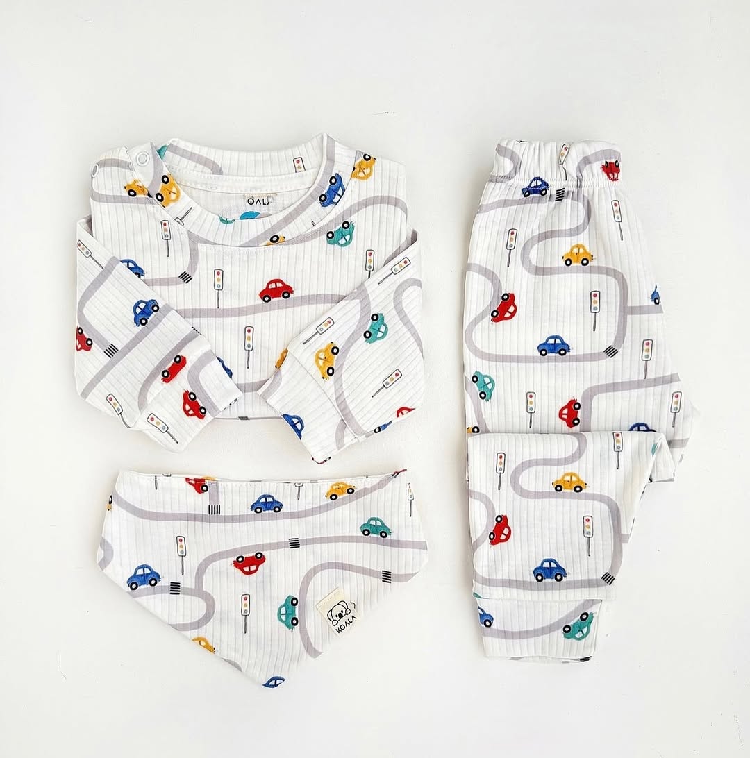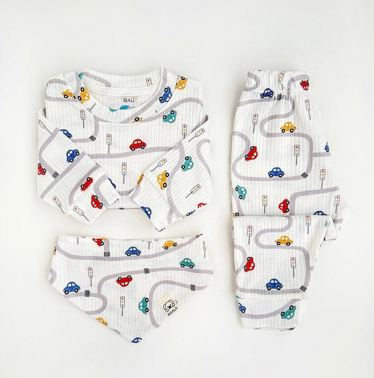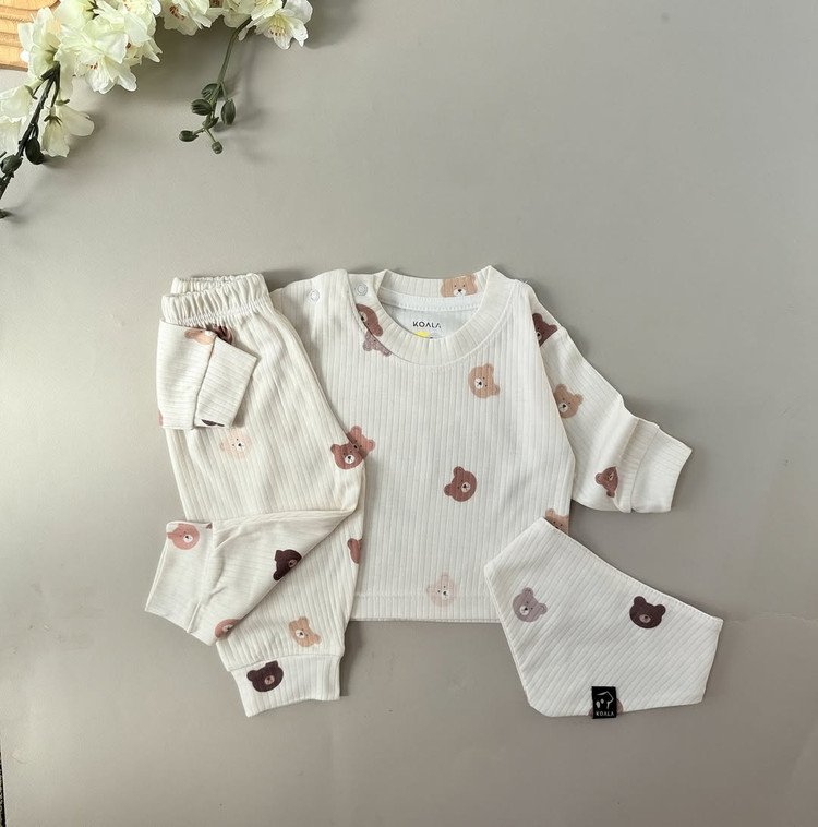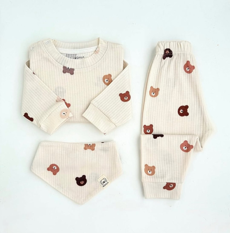 ست سه تیکه بلوز شلوار پیشبند نخ پنبه کبریتی
