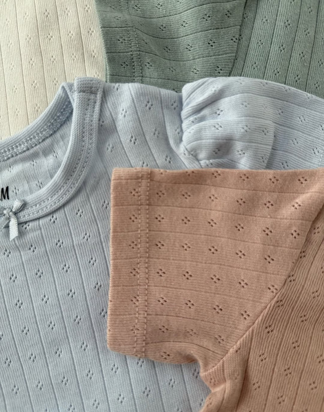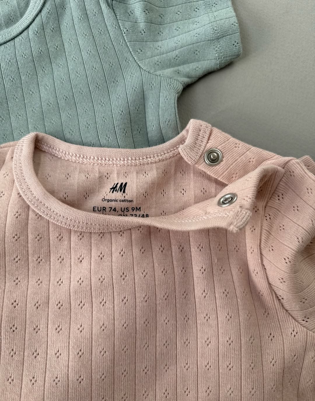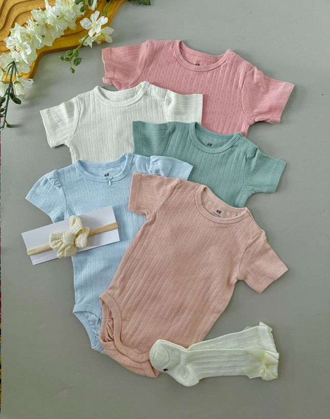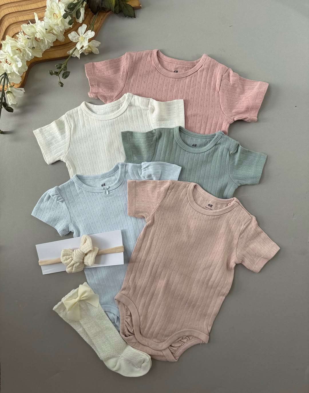 بادی های وارداتی اچ ام دیگه نیاز به تعریف نداره. سایز۲/۴(سرشانه تافاق۳۹ _پهنا۲۳) سایز۶/۹(سرشانه تافاق۴۱ _پهنا۲۳) سایز۹/۱۲(سرشانه تافاق۴۴ _پهنا۲۴) سایز۱۸/۲۴(سرشانه تافاق۴۶ _پهنا۲۵) سایز۱/۲(سرشانه تافاق ۴۸_پهنا۲۶) سایز۲/۳(سرشانه تافاق۴۸ _پهنا۲۶) سایز۳/۴(سرشانه تافاق ۵۳_پهنا۳۰) لطفا به اندازه ها دقت کنید و طبق اون سایز مورد نظرتونو انتخاب کنید. جثه و سرعت رشد بچه ها با هم فرق داره. یک الی دو درجه تغییر رنگ به دلیل شرایط نور و عکاسی در نظر بگیرید. تعویض و مرجوعی نداریم با دقت انتخاب کنید.🌸😍