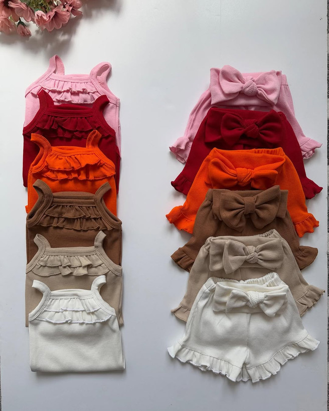 بادی شورتک همراه هد سایز۱:سرشانه تا فاق(۳۹شورتک(فاق۱۸پهنا۲۱) سایز۲:سرشانه تا فاق(۴۴پهنا۲۱)شورتک(۱۸پهنا۲۳) سایز۳:سرشانه تا فاق۴۴پهنا۲۲)شورتک(۱۹پهنا۲۵) سایز۴:سرشانه تا فاق۴۵پهنا۲۴)شورتک(۲۰پهنا۲۶) قواره لباس ها و جثه بچه ها باهم متفاوته لطفا اندازه ها چک کنید ۲سانت خطای اندازه گیری در نظر بگیرید و به خاطر نورعکاسی یکی دو درجه اختلاف رنگ وجود دارد