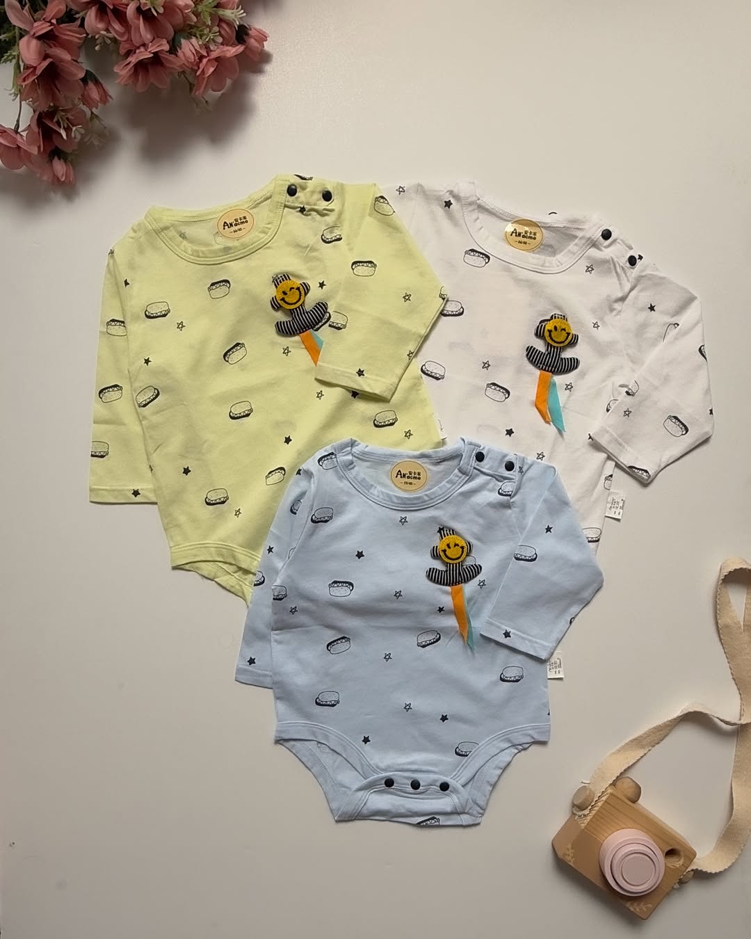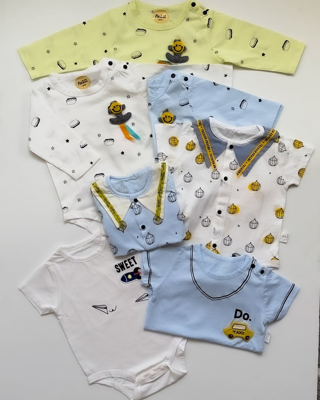 بادی وارداتی سایزبندی سایز۵۹(پهنا۲۵فاق۳۵قدآستین۲۳) سایز۶۶(پهنا۲۷فاق۳۹قدآستین۲۲) سایز۷۳(پهنا۲۸فاق۴۳قدآستین۲۰) طرح همبرگر سایز۶۶(پهنا۲۷فاق۳۹) سایز۷۳(پهنا۲۸فاق۴۳) سایز۸۰(پهنا۲۷_فاق۴۵) طرح موشک سایز۵۹(پهنا۲۵فاق۳۵) سایز۶۶(پهنا۲۷فاق۳۹) سایز۷۳(پهنا۲۸فاق۴۳) طرح ماشین لطفا لطفا طبق اندازه های کپشن انتخاب کنید و به ماه توجه نکنید سایز و قواره لباس ها متفاوت هستند و همچنین سرعت رشد و جثه بچه ها هم با هم متفاوته و طبق اندازه کوچولوی خودتون انتخاب کنید