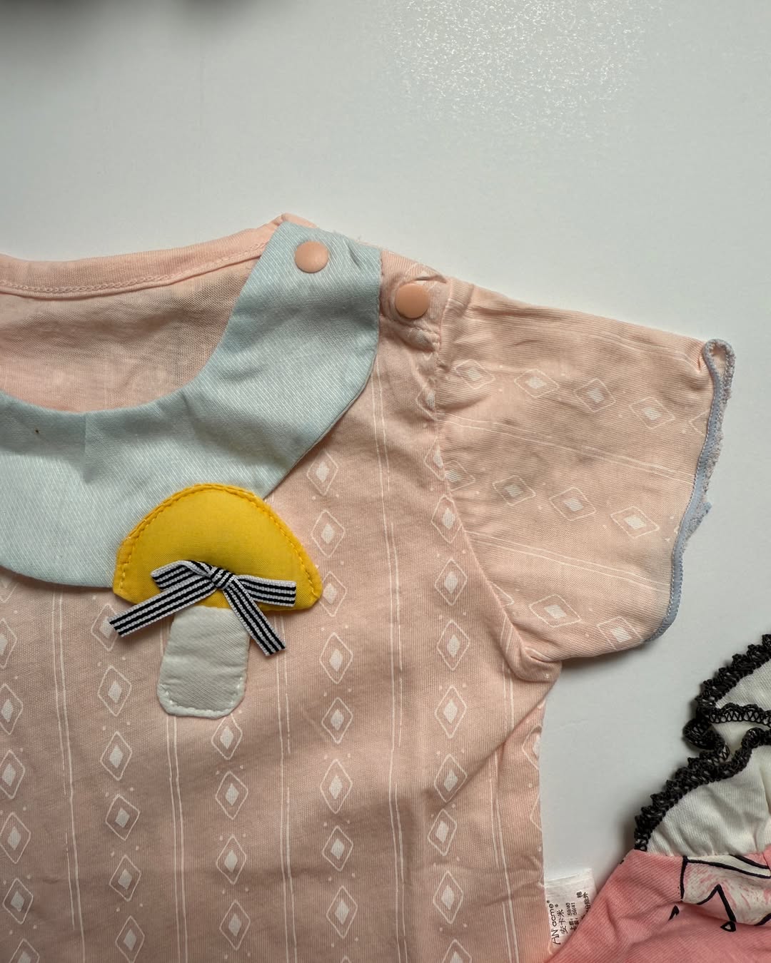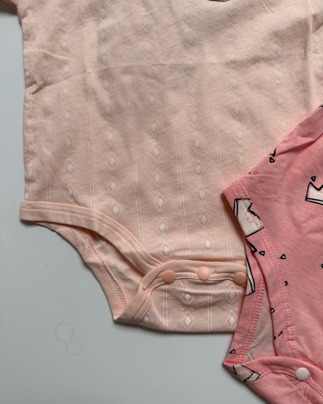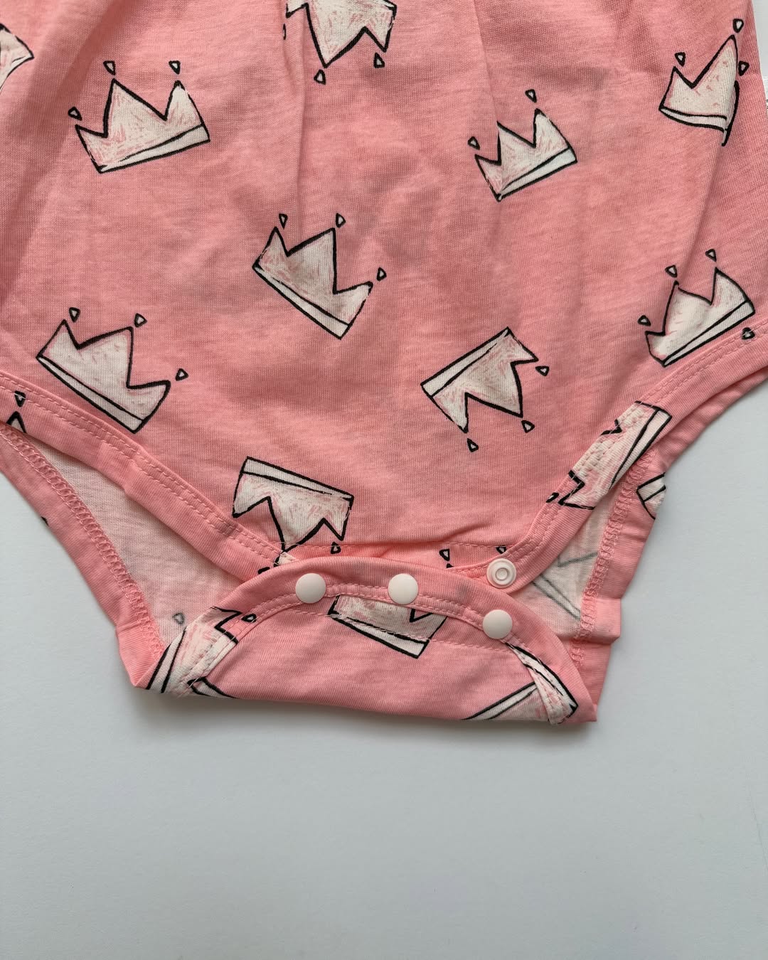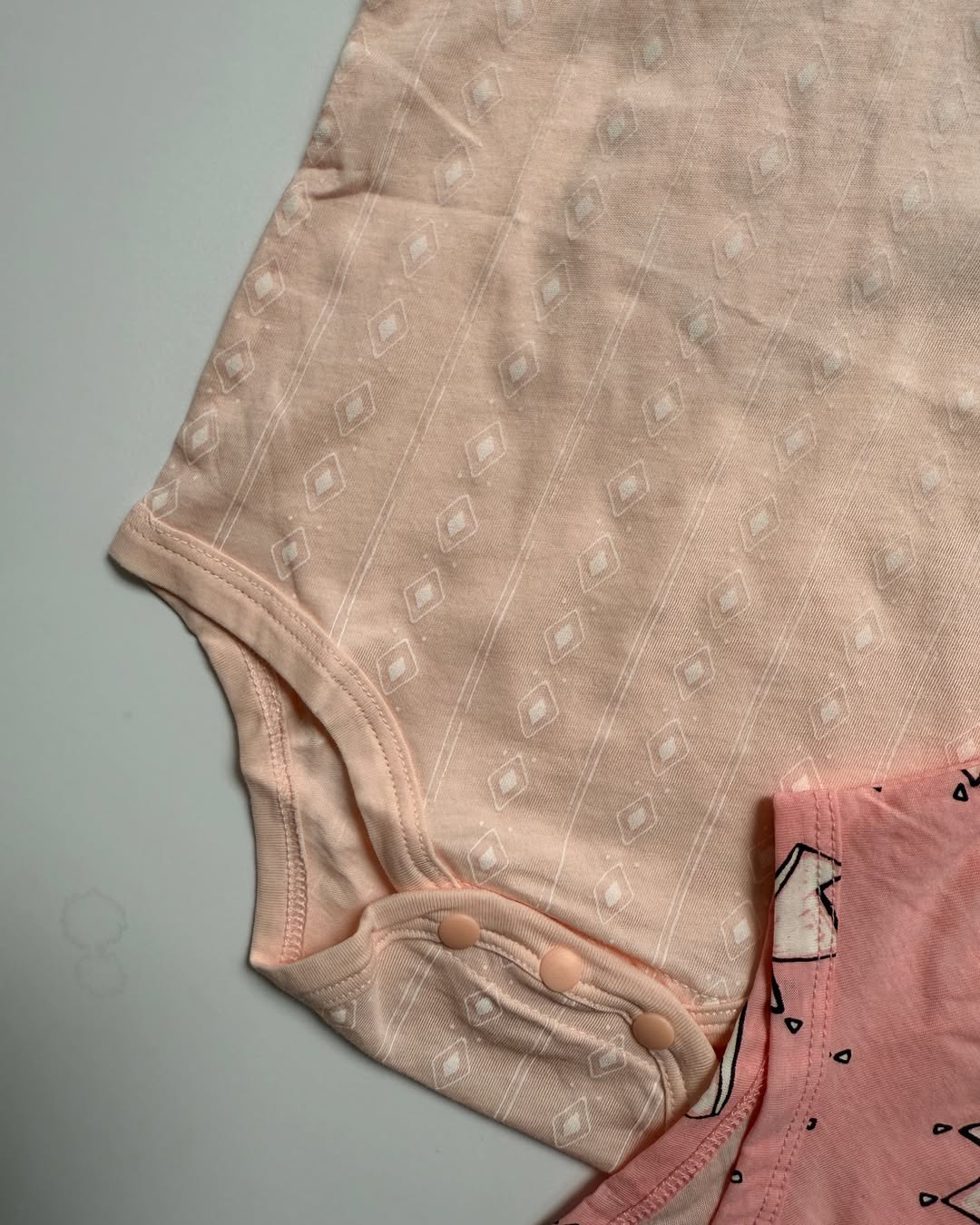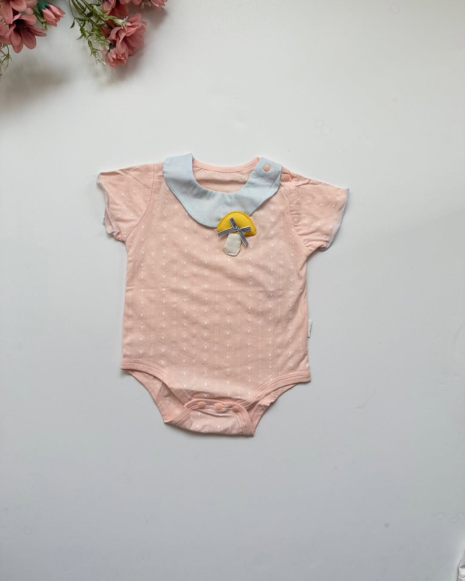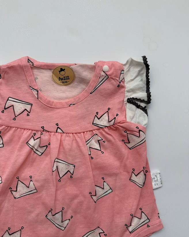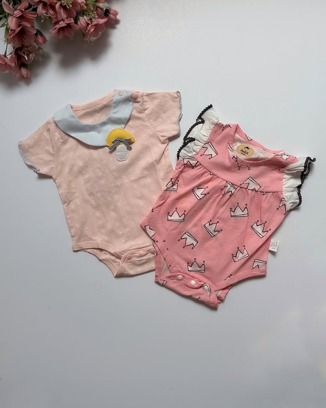 بادی وارداتی نخ پنبه سایز۵۹(پهنا۲۴فاق۳۵) سایز۶۶(پهنا۲۶فاق۳۹) سایز۷۳(پهنا۲۷فاق۴۳) طرح قارچ وتاج لطفا به اندازه ها دقت کنید و طبق اون سایز مورد نظرتونو انتخاب کنید جثه و سرعت رشد بچه ها با هم فرق داره مقایسه نکنید و با لباسی که سایز کوچولوی خودتونونه مطابقت بدید .